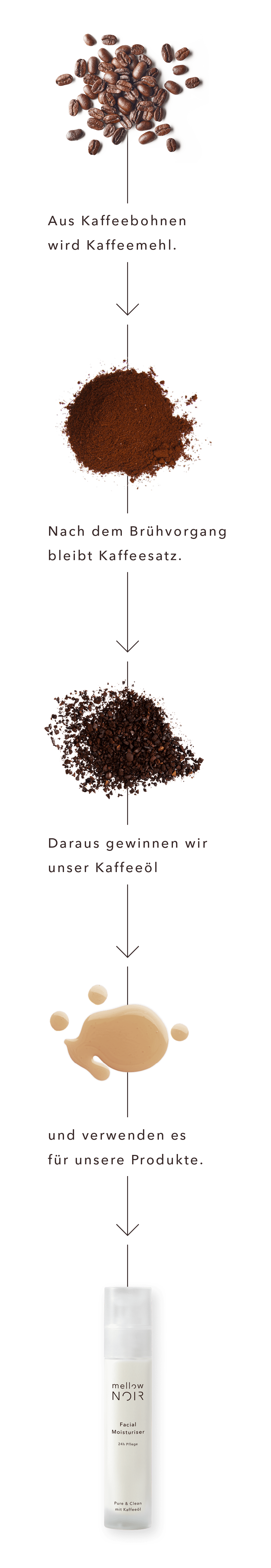 In einzigartigen Rezepturen vereinen wir eine sehr sorgfältige Auswahl purer und hochwirksamer Inhaltsstoffe. Die Schönheitsinnovation, aktives Kaffeeöl aus 100% verbrauchtem Kaffee wird in jedem unserer Produkte durch modernste Wirkstoffe veredelt.
