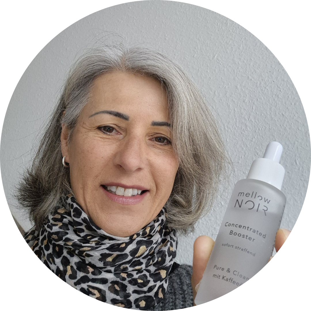 "Llevo unas cuatro semanas usando la crema hidratante mellow NOIR y estoy encantada. Durante años, sobre todo en invierno, he tenido que lidiar con zonas secas en la frente y la nariz, pero desde que uso esta crema hidratante ya no noto tirantez ni tengo la piel del rostro seca. Además, huele de maravilla y, de paso, contribuyes a cuidar el medio ambiente."